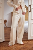CÉLESTE - комплект про тиху розкіш і свободу бути собою М’яка віскоза на бавовняній основі — приємна до тіла,не холодить, не ковзає, дарує відчуття спокійного комфортуВдома — бездоганноПоза домом — très chic Довжина штанів — 105см Склад: 55% віскоза45% поліестер
